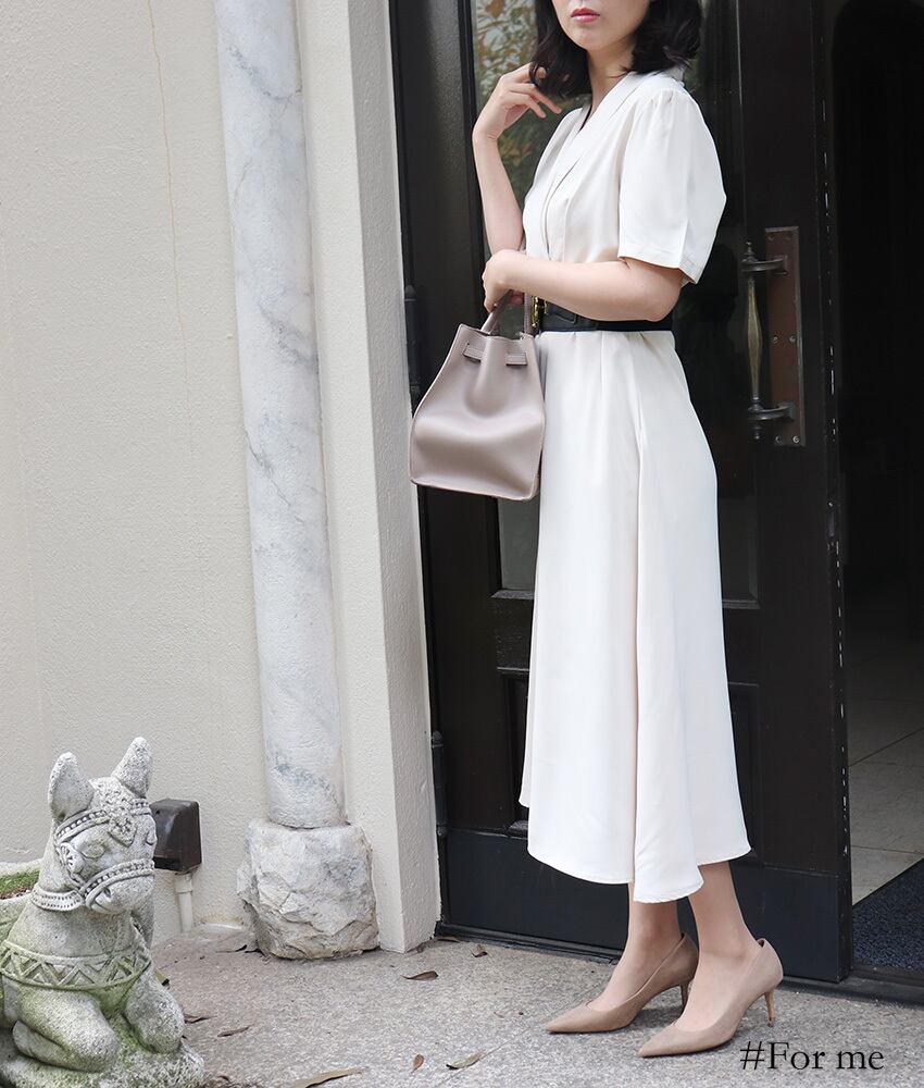 ロング丈のエレガントワンピース。ハイウエスト+ベルト付きで、スタイルアップ間違いなし!しっかりとした生地感なので、高見えします。