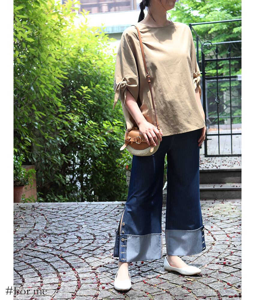 綿生地で涼しげなトップス。シンプルな中にちょっぴり可愛らしさが備わった袖口です。ゆったりとした着心地なので、夏にピッタリな1枚です。