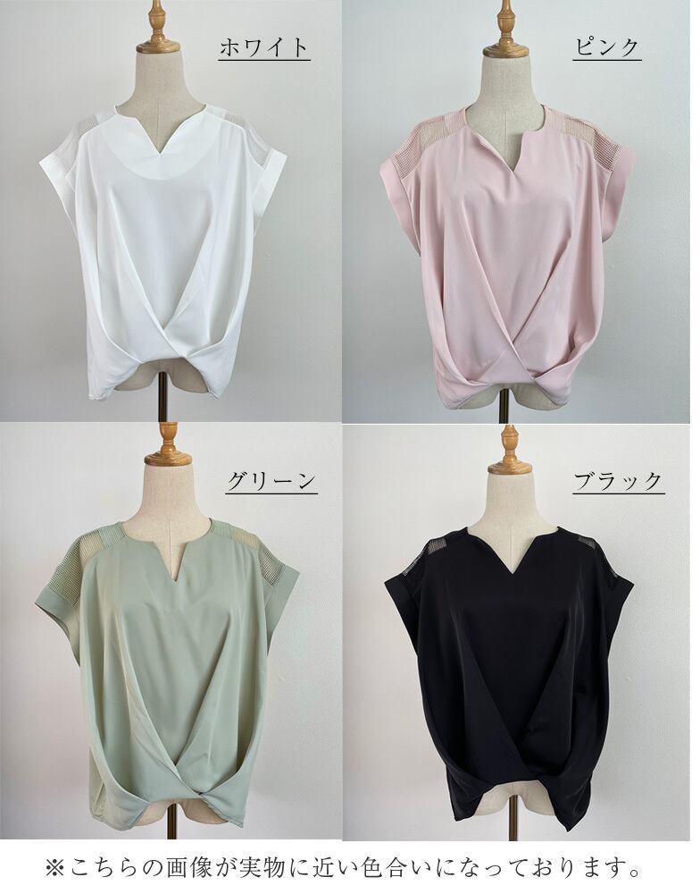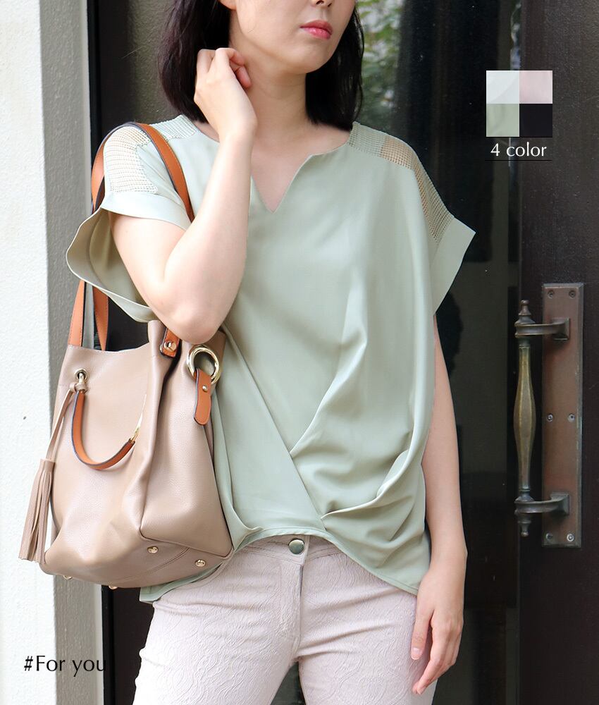 袖口が網目で涼しげなスタイルになるトップス。ドルマン型なので、腕カバーにもなります♪Vネックも夏には嬉しいデザインです。