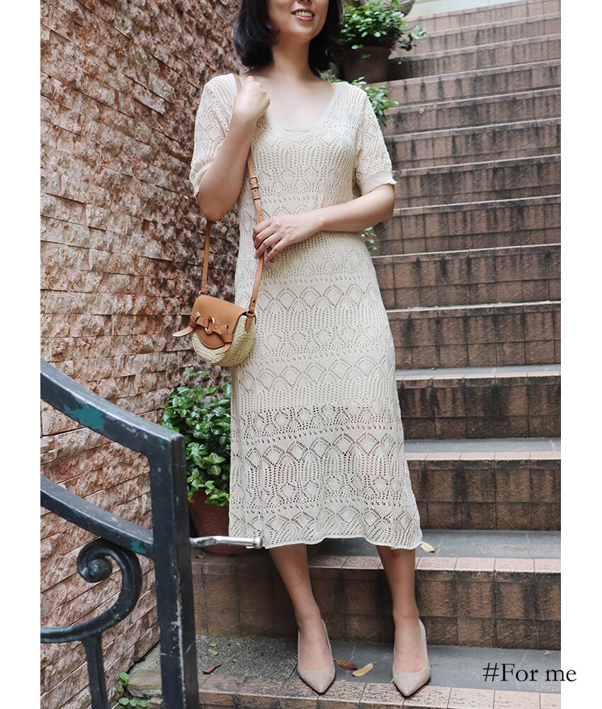 【新作入荷】編みレース半袖ワンピース_e0032203036