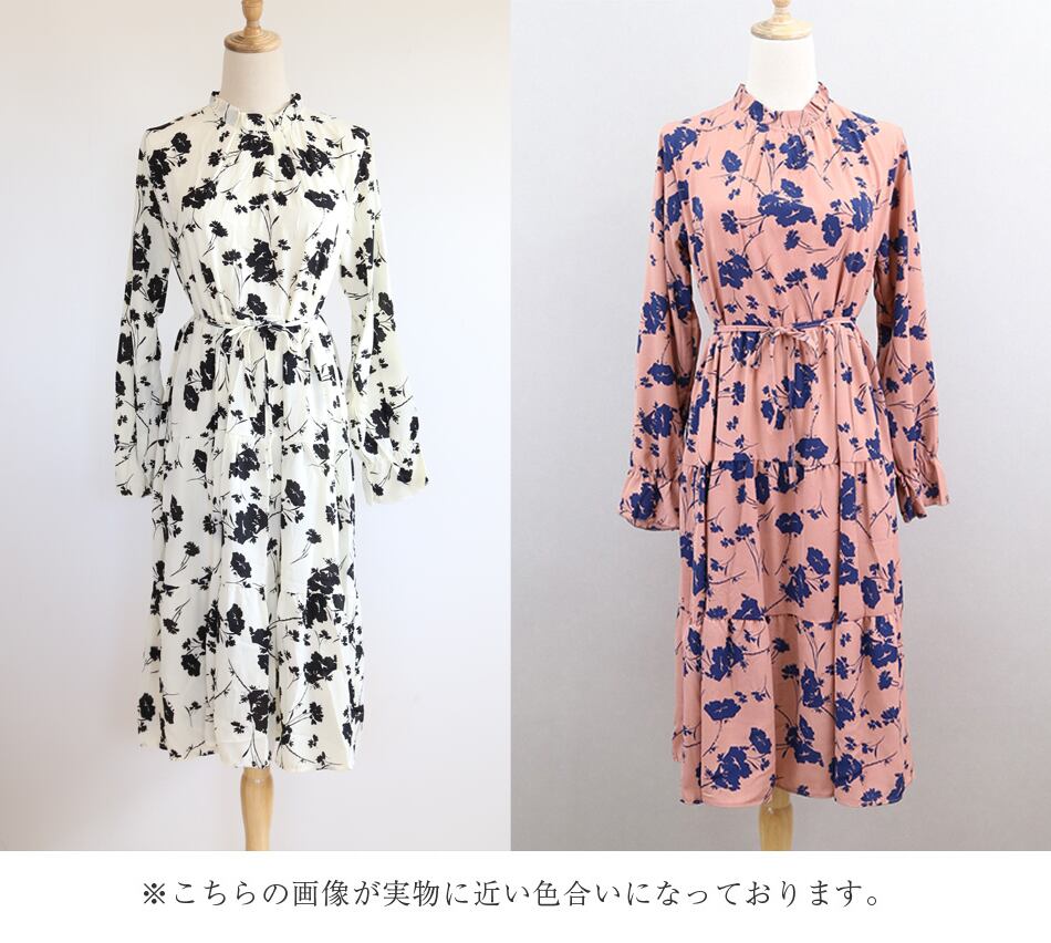 上品な花柄が全体にデザインされたワンピース。ベルト紐もとてもオシャレです。これを着てお出かけすると注目されること間違いなしです!!春夏に活躍するアイテムです。